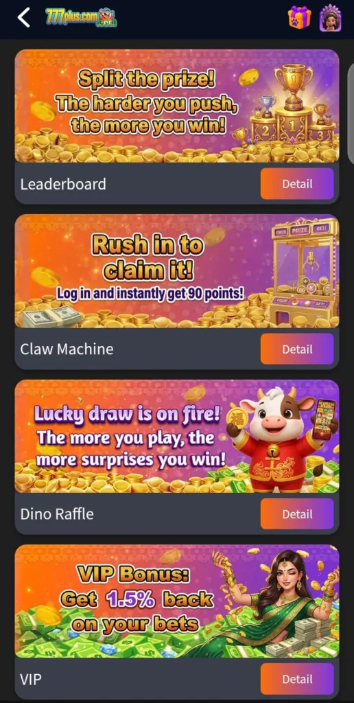 The 777 Plus platform is designed to make navigation simple and intuitive. Every game, menu, and option is laid out clearly, ensuring players can easily find what they want without confusion.
