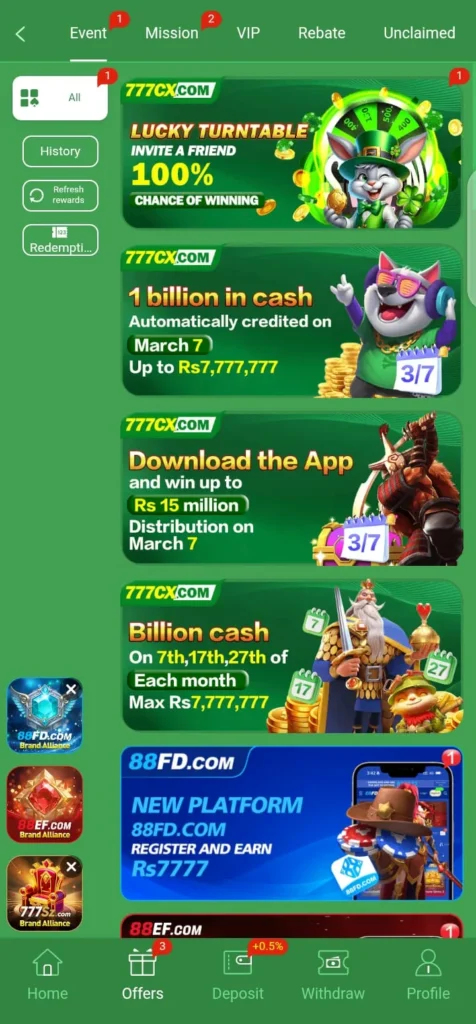 The deposit and withdrawal system is convenient and reliable, especially with Jazz Cash and Easy paisa. Daily bonuses, referral programs, and event promotions add extra excitement, making the overall gaming experience rewarding and entertaining.