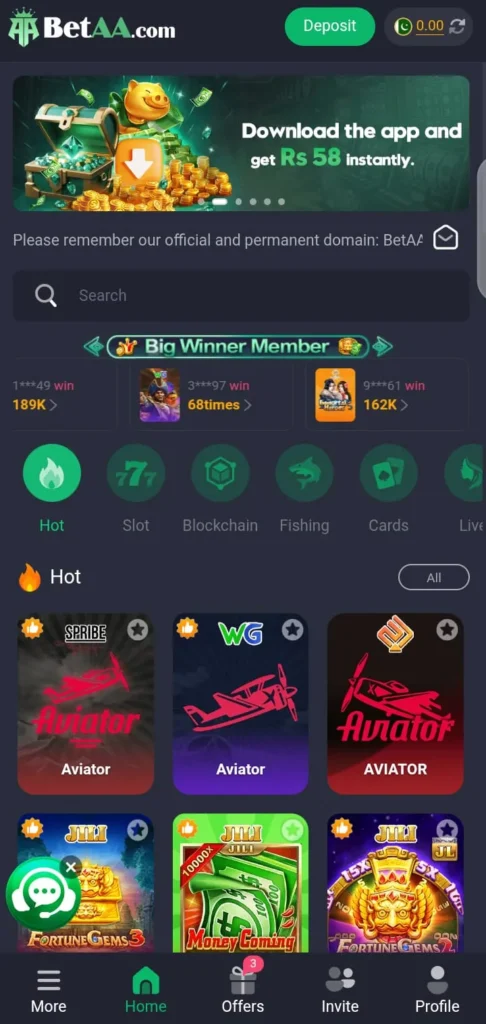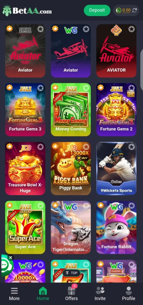 Bet AA App offers a wide range of mini games such as Aviator, Crash, Plinko, and more. This variety keeps users engaged and allows them to try different types of gameplay within one platform.